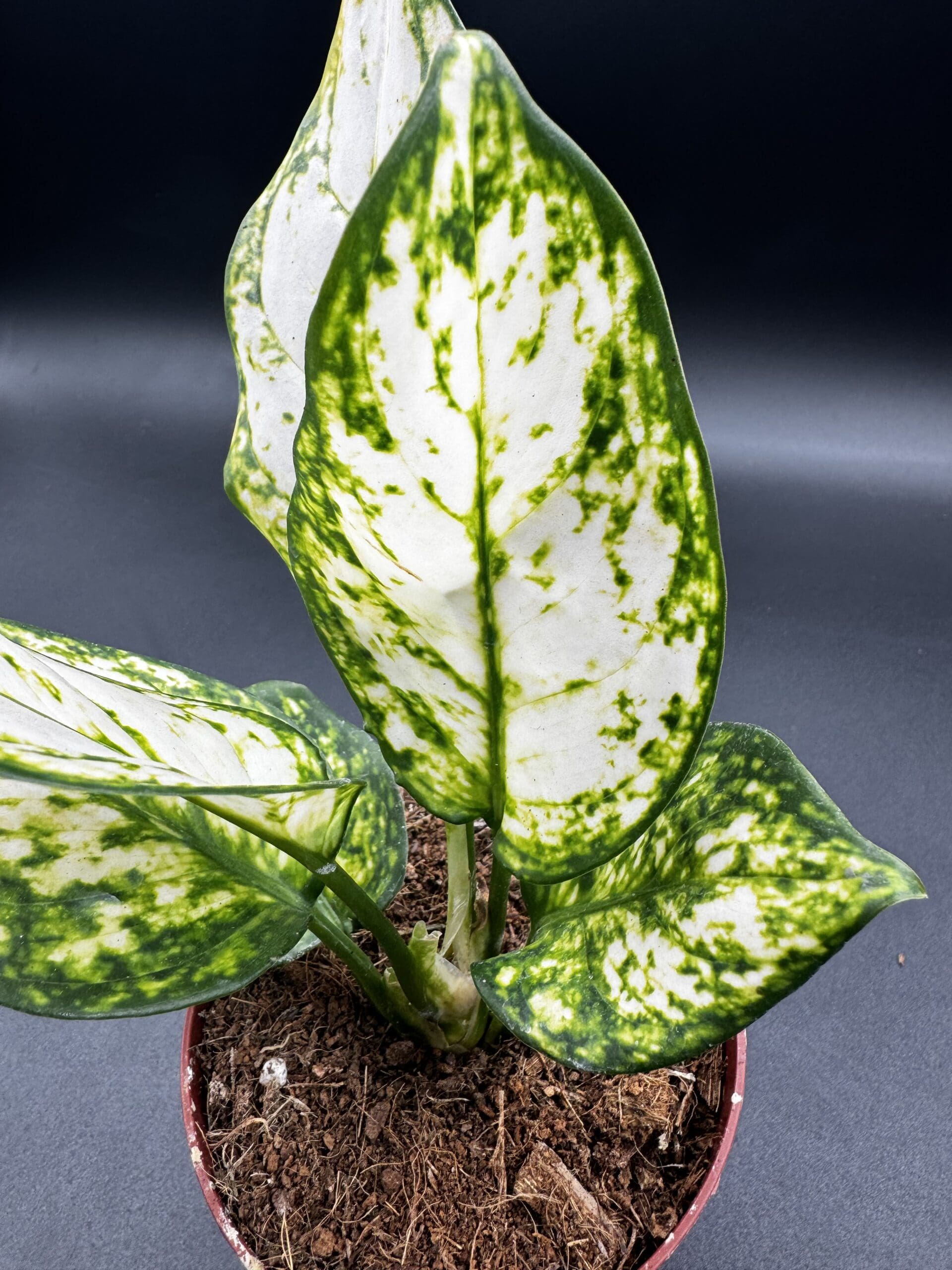 Often referred to as the ‘Snow White,’ this plant’s bright, almost luminescent leaves add a stunning contrast to any indoor setting. Its leaves, with the gentle blend of green and white, resemble a beautiful snowfall, hence its nickname.